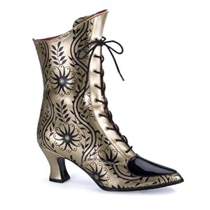 2 Inch Victorian Ankle Boots Metallic Print Boots Halloween Costume Accessory Lace Up