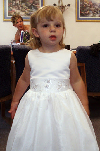 Let your flower girl dance the night away with the Tiered Tea-Length Satin Dress. It has girlish spaghetti straps and the voluminous tiered skirt will be flowing every which way while she is having the time of her life running around. It has an invisible zip in the back and comes in ivory. Don't be afraid to gussy this one up with a colorful sash or bow.