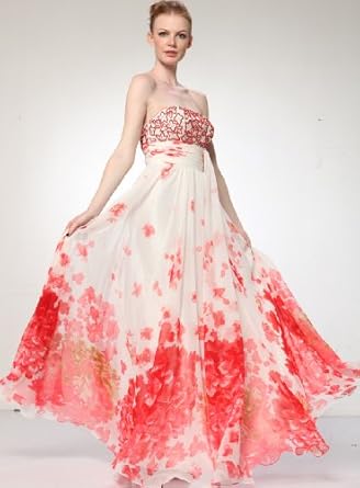 Printed chiffon long gown, embroidery beads sequince detail on chest The pictures of the dress are taken using our own actual dress. The dress you order will be exactly the same.
